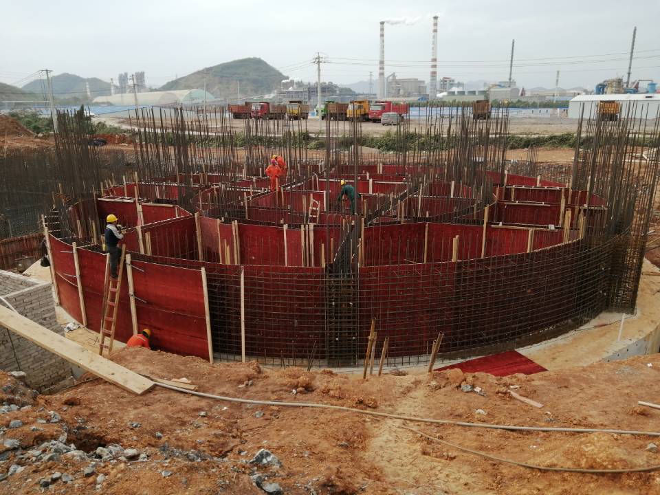 截至发稿前,烟囱已顺利滑升至24米,筒仓完成基础底板的浇筑任务。