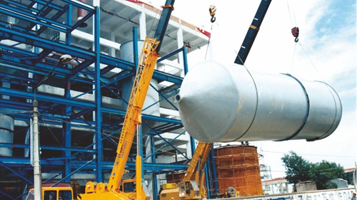 湖北洋丰12万吨合成氨脱塔吊装