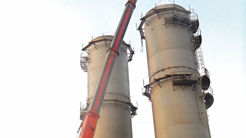 云南富瑞年产60万吨DAP工程冷却尾气洗涤塔吊装